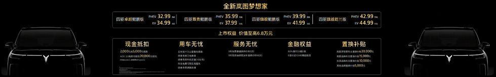 9月19日,以“感恩相伴 夢想同行”為主題的東風汽車感恩6000萬用戶相伴暨全新嵐圖夢想家上市發布會于武漢成功舉辦,全新嵐圖夢想家正式上市并公布價格,其中,全新嵐圖夢想家四驅卓越鯤鵬版PHEV 32.99萬元、EV 34.99萬元;全新嵐圖夢想家四驅尊貴鯤鵬版PHEV 35.99萬元、EV 37.99萬元;全新嵐圖夢想家四驅旗艦鯤鵬版PHEV 39.99萬元、EV 41.99萬元;全新嵐圖夢想家四驅旗艦乾崑版PHEV 42.99萬元、EV 44.99萬元。