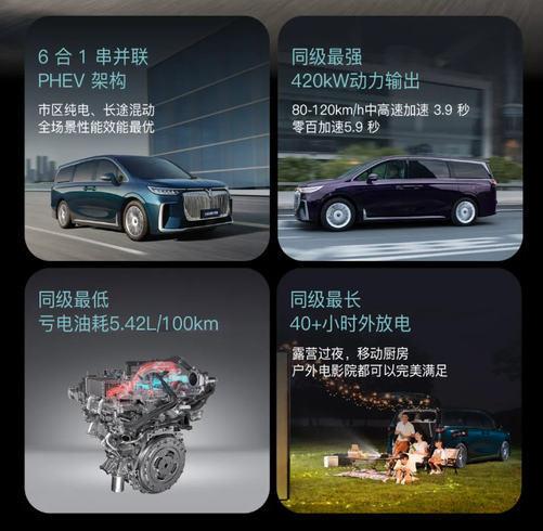 全新嵐圖夢想家搭載嵐海動力,全系標配智能電動四驅系統、擁有同級最強的420kW動力輸出,同級唯一的百萬級魔毯底盤和CDC智能阻尼可變電磁減振器,CLTC虧電油耗僅為5.42L/100km,同級最低,CLTC工況下純電續航達到同級第一的235公里,綜合續航更是達到同級最長的1411公里,并且配置多種駕駛模式覆蓋出行全場景,市區、郊區、高速都能從容出行,毫無續航焦慮。可以說,駕控和油耗都做到了極致,真正實現了城市用電、長途用油的靈活切換,在豪華MPV市場無出其右。
