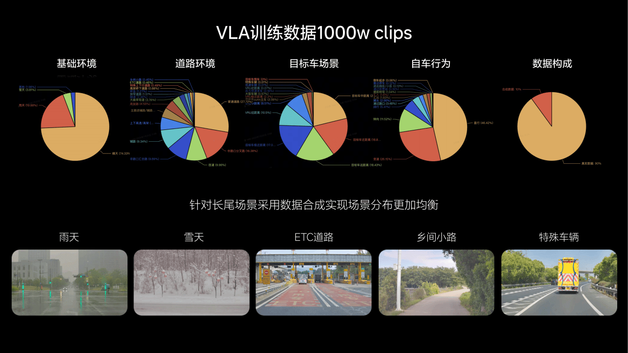 具體這些內(nèi)容比較復(fù)雜,就不在這里展開,簡(jiǎn)單總結(jié)一下就是:理想汽車有12.66億的數(shù)據(jù)采集里程,而訓(xùn)練VLA同樣用了1000萬Clips的數(shù)據(jù),但這些數(shù)據(jù)和之前的訓(xùn)練數(shù)據(jù)有區(qū)別。同時(shí)新的訓(xùn)練數(shù)據(jù)有10%的世界模型合成數(shù)據(jù),用來解決一些長(zhǎng)尾場(chǎng)景的訓(xùn)練。而在算法上,理想VLA采用先蒸餾出車端模型再進(jìn)行超級(jí)對(duì)齊和強(qiáng)化訓(xùn)練的方式,最終訓(xùn)練出一個(gè)4B的車端模型。