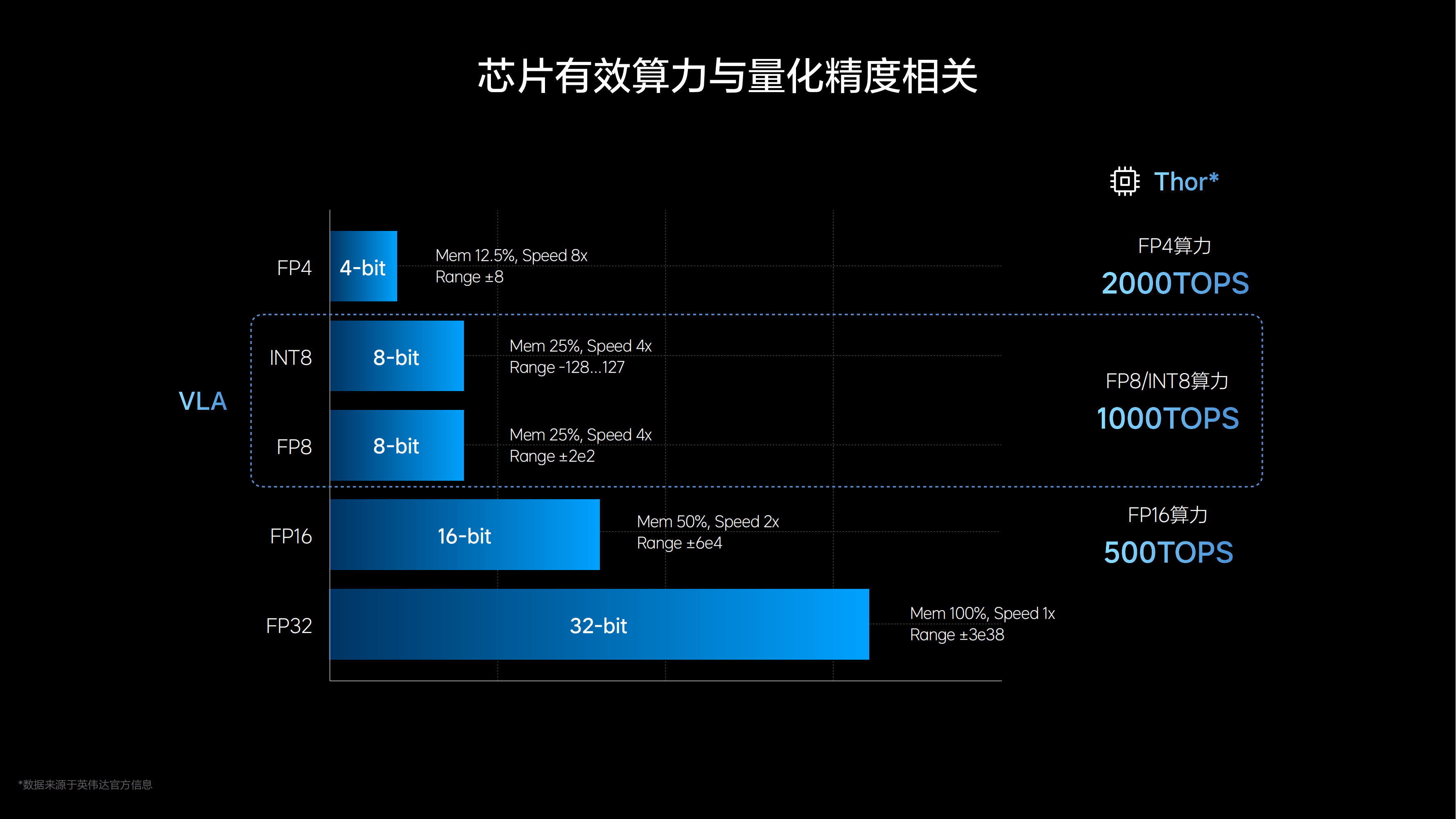 另一方面,盡管VLA司機(jī)大模型的效率還受限于算力,但是從長(zhǎng)遠(yuǎn)來看,通過對(duì)VLA模型精度的變化,比如從目前采用的INT8與FP8混合精度推理,變?yōu)镕P4精度推理,預(yù)計(jì)未來算力可實(shí)現(xiàn)翻倍,為VLA模型釋放更大的算力空間。